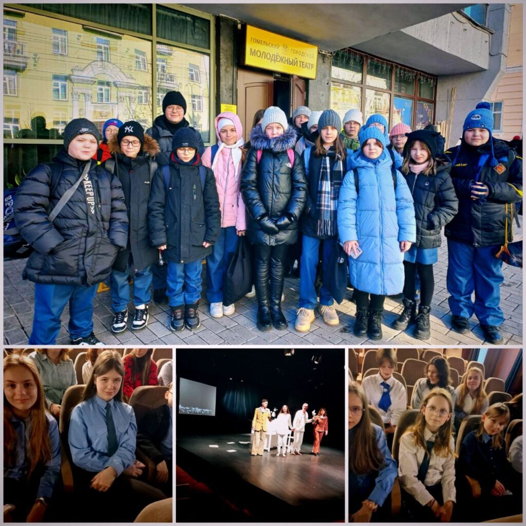 Ребята 6 «Б» класса посетили Гомельский городской молодёжный театр, где посмотрели спектакль «Вне времени» по рассказу Кира Булычева «Можно попросить Нину»