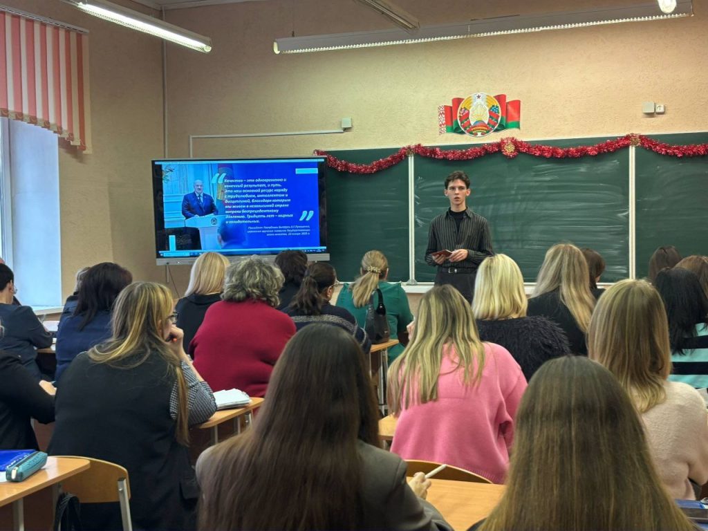 Сегодня в трудовом коллективе ГУО «Средняя школа №19 г. Гомеля» прошёл Единый день информирования на тему «ПЯТИЛЕТКА КАЧЕСТВА – ИТОГИ ГОДА БЛАГОУСТРОЙСТВА»
