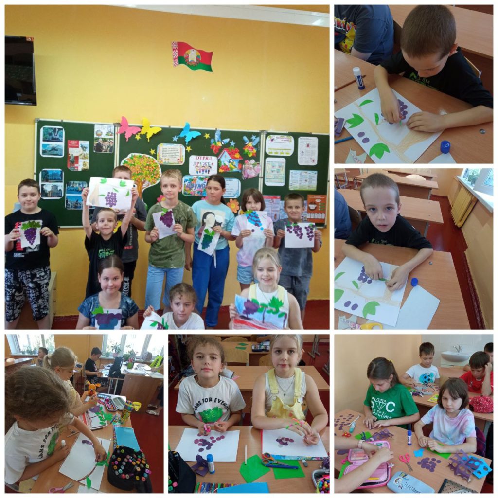 У ребят школьного краеведческого лагеря «Родничок» царит атмосфера творчества 04.08.2025 Admin ВОЛ "Родничок", Лагерь дневного пребывания, Новости Свои фантазии на тему «Гроздь винограда» ребята представили в аппликации
