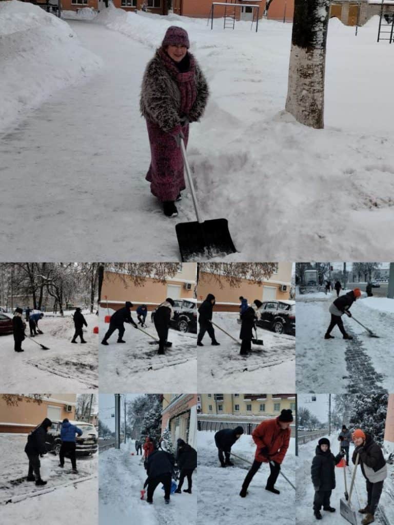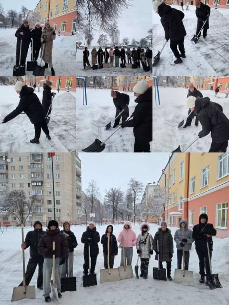 Учащиеся, родители и трудовой коллектив школы расчищают территорию школы и прилегающие подъезды, чтобы обеспечить безопасные и удобные условия. Вместе мы можем всё!
