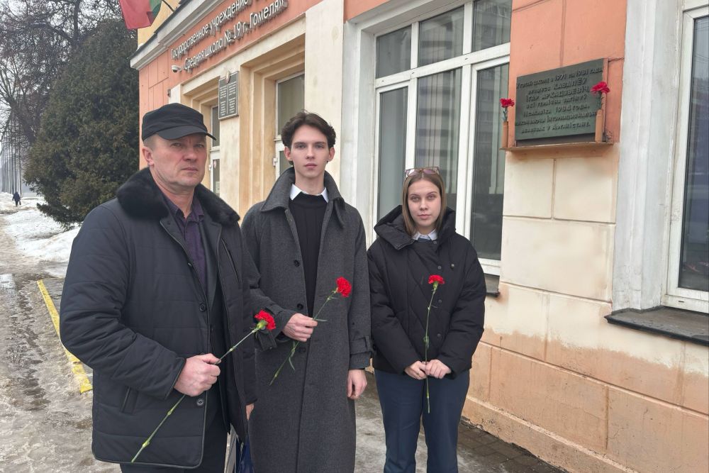 13.02.2026 Сергей Владимирович Шевченко вместе с руководителем по военно-патриотическому воспитанию и учащейся 11 «А» таможенного класса почтили память погибших воинов-интернационалистов, возложив цветы к мемориальной доске имени Игоря Аркадьевича Ковалева