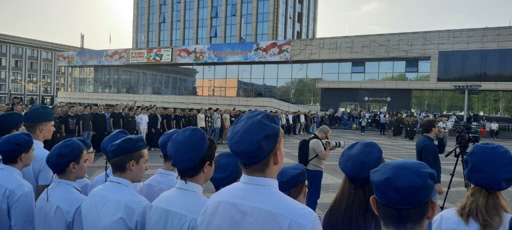 На площади Государственного флага учащиеся таможенных классов нашей школы приняли участие в церемонии отправки новобранцев весеннего призыва.